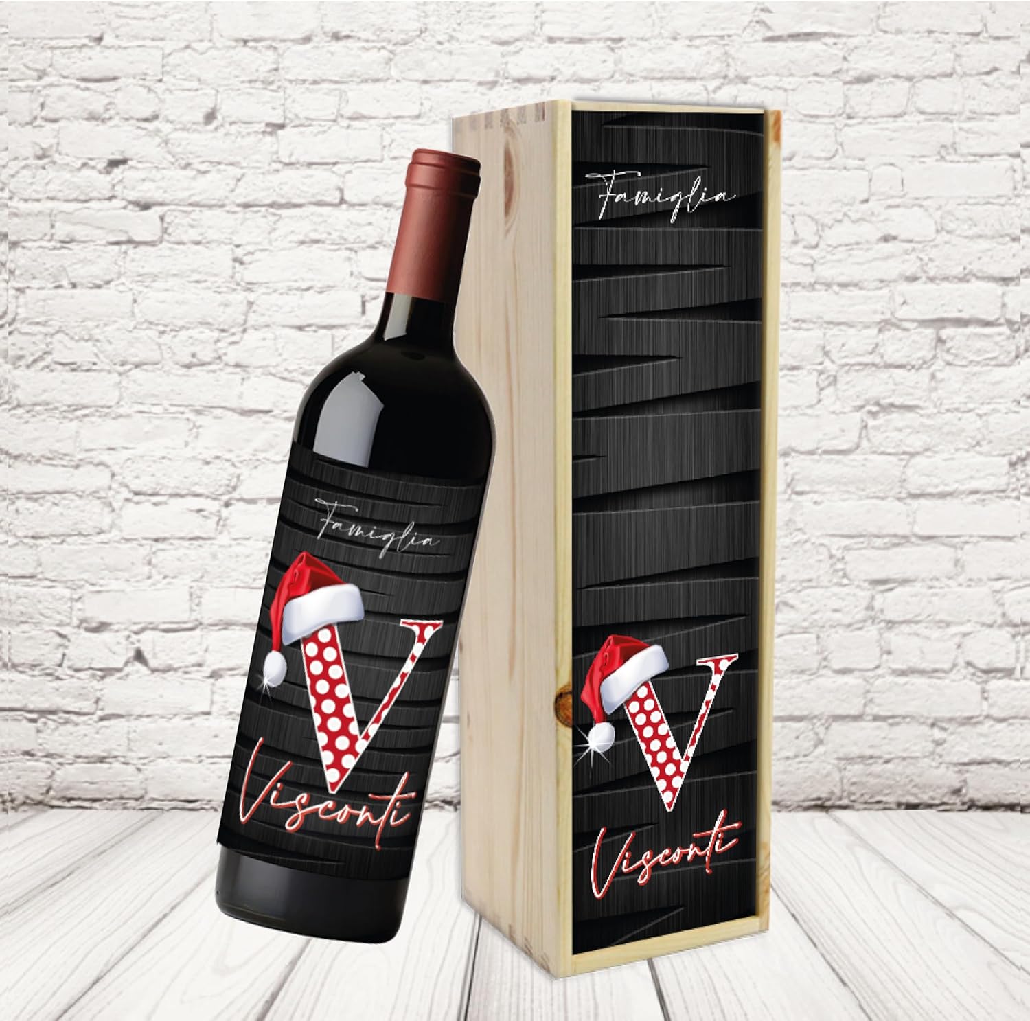 Scatola Box Porta bottiglie in Legno per Vino Cassetta con Etichetta Personalizzata Famiglia – IDEA REGALO NATALE NATALIZIA ”CHRISTMAS LETTER”