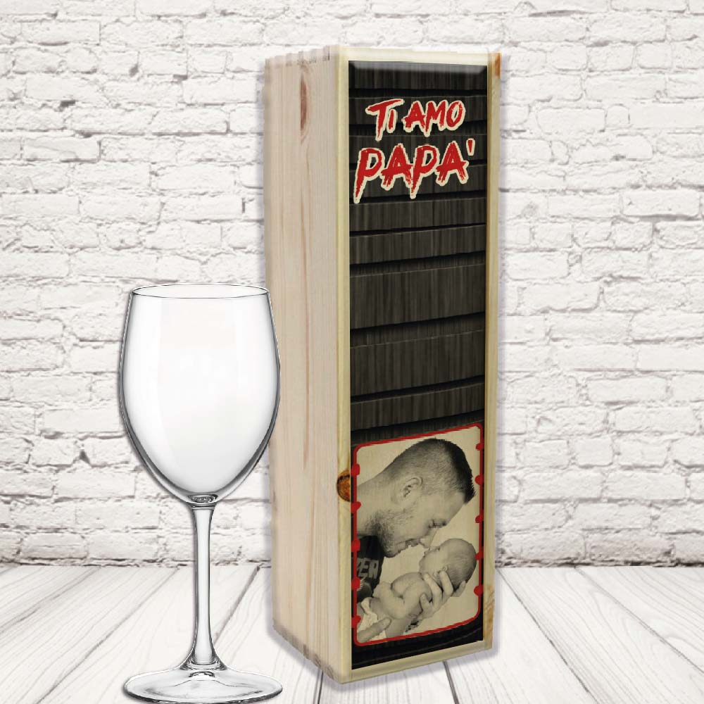 Scrigno in Legno Cofanetto Porta Bottiglia Da Vino Spumante ”DAD MATTONI FOTO“ PERSONALIZZABILE idea regalo originale per lui festa del Papà