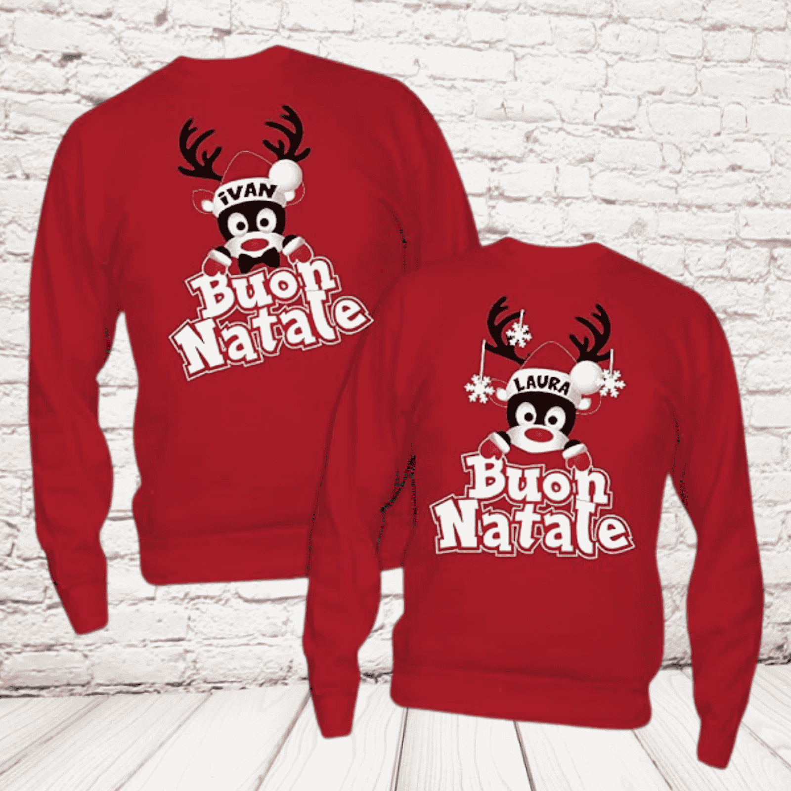 Set Coppia di Felpe Famiglia Natale Rosse Maglie Natalizie per papà Mamma Fidanzati Coppie Maglione Personalizzate con Nome Renne