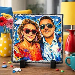 - PERSONALIZZAZIONE UNICA: Stampa fotografica personalizzata su pietra ardesia naturale trasformata in opera d’arte pop art con grafica vibrante, stelle, cuori e fumetti in stile comic book per un regalo davvero originale