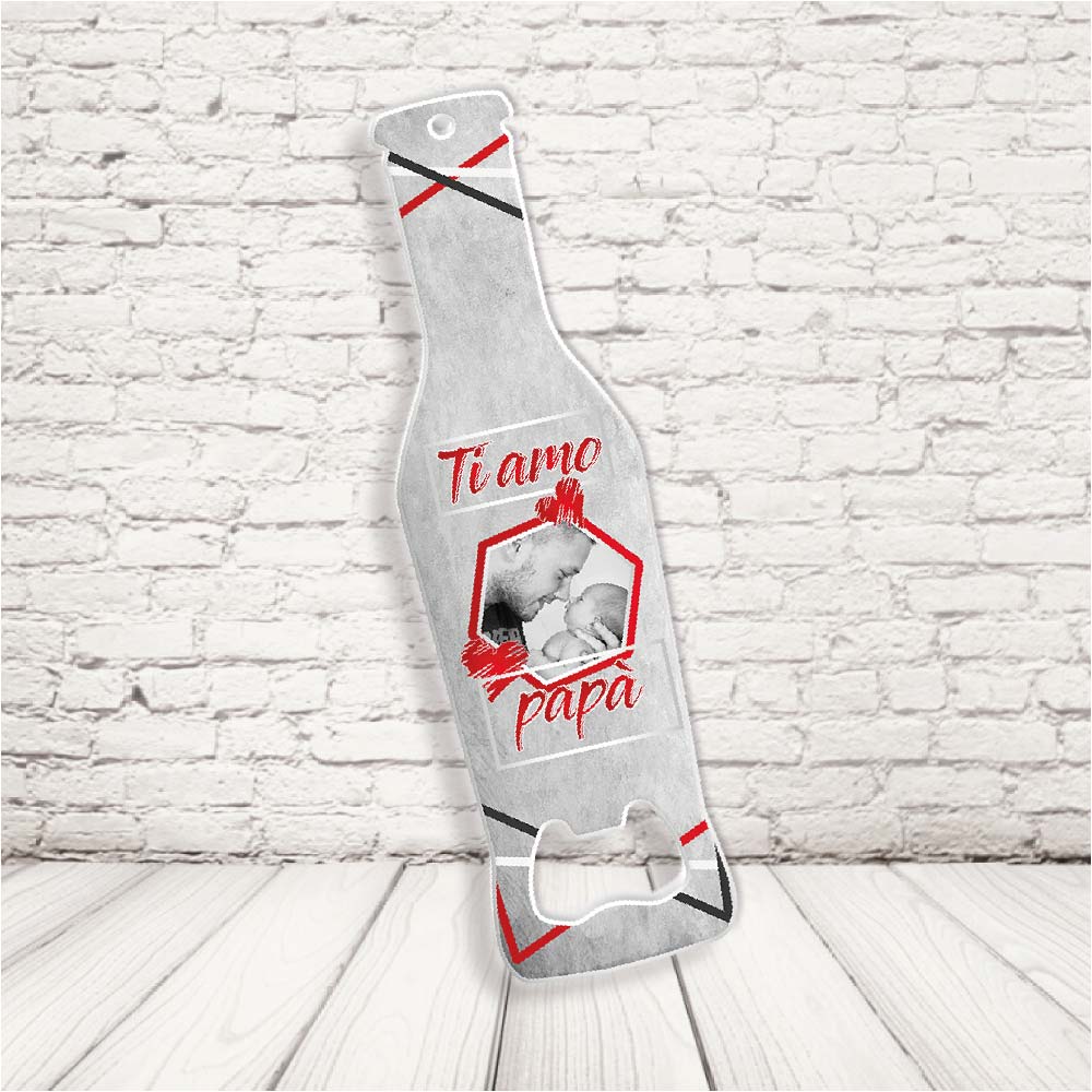 Stappino Apri Bottiglia personalizzato con Nome e Dediche Idea regalo Festa Del Papà Amore Natale Compleanno Lui Nonno Forma Bottiglia ”CORNICE ROSSA”