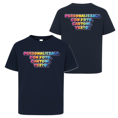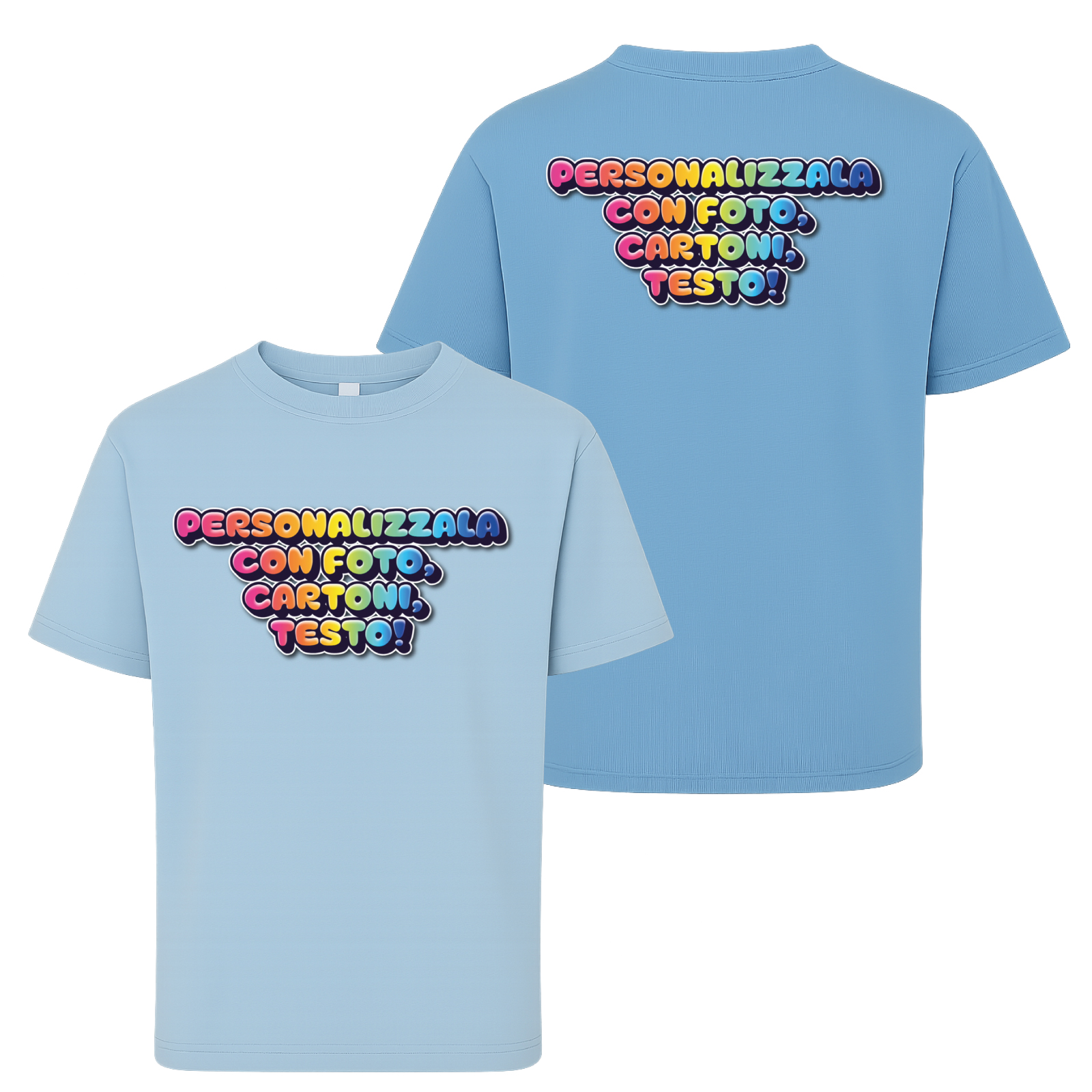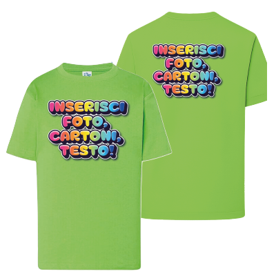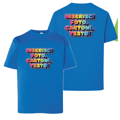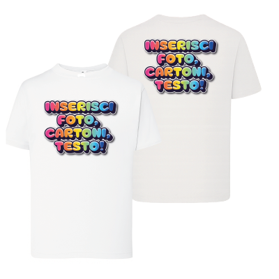 T-Shirt Bambini Bimbo Ragazzi Personalizzata con Nome Foto Logo Stampa a Colori Maglietta Maglia per Gite Eventi Scuola Colonie Associazioni Bianca Gialla Rossa Verde Blu Fucsia Nera