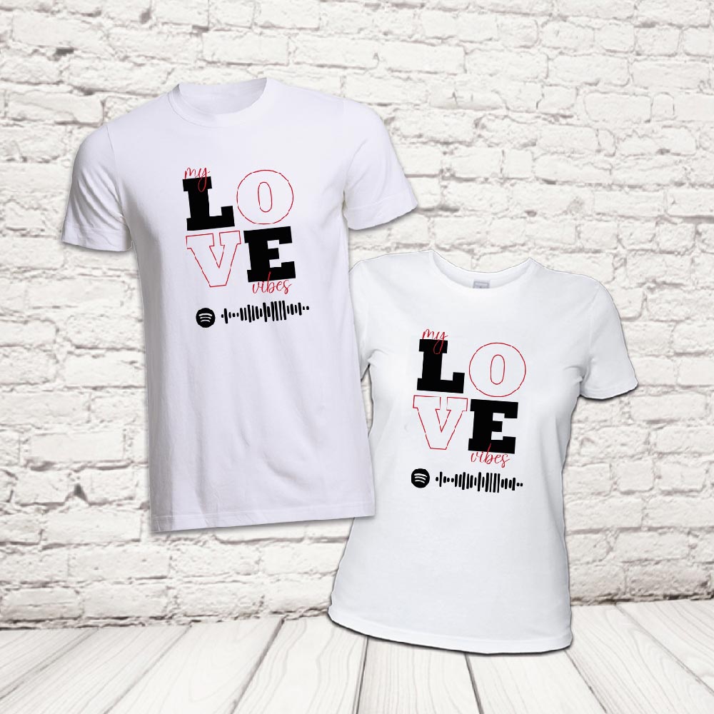 T-Shirt Maglie di Coppia per Fidanzato Fidanzata ”LOVE SPOTIFY” Maglie Magliette Natale San Valentino Regalo per Lui e per Lei, Bianche Nere