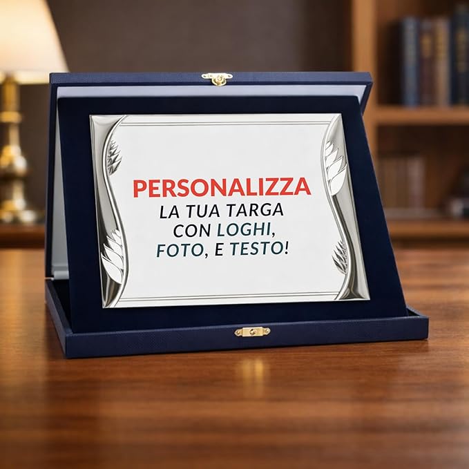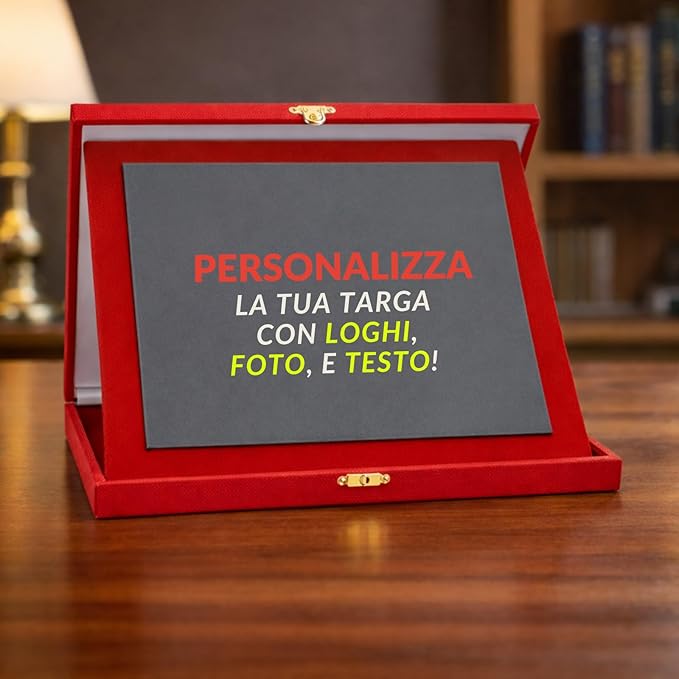 - ELEGANTE ASTUCCIO IN VELLUTO: Disponibile in 5 opzioni con astuccio rivestito in velluto blu o rosso che protegge e valorizza la targa, perfetto per una presentazione di prestigio