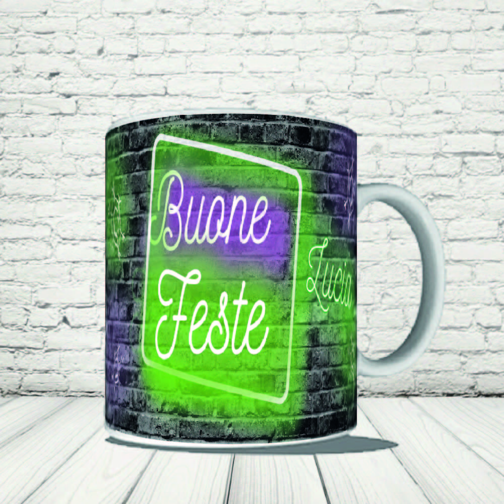 TAZZA MUG IN CERAMICA PERSONALIZZATA CON NOME FAMIGLIA DEDICA – IDEA REGALO NATALE NATALIZIA ”CHRISTMAS NEON”