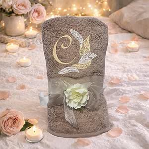 Telo Doccia Grande Ricamato con Iniziale, Asciugamano Bagno 150×100 cm, 100% Spugna di Cotone 420 gr/mq Morbido, Assorbente, Resistente, Idea Regalo per lui o lei Donna Uomo Iniziale Floreale
