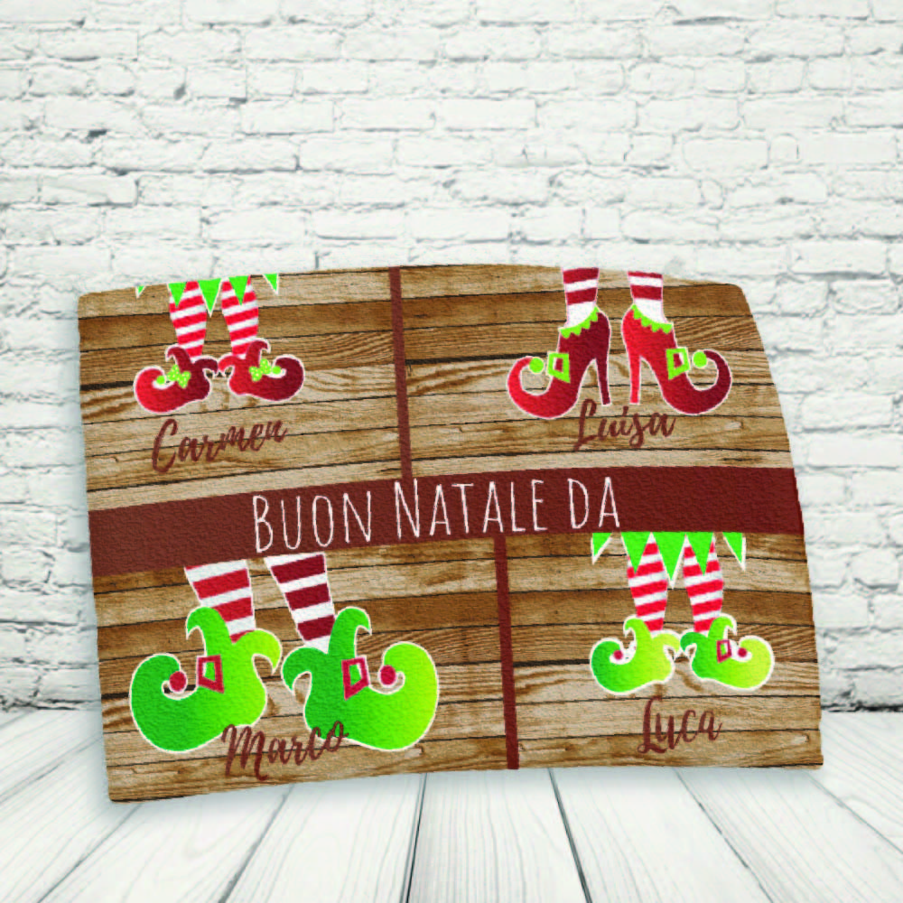 Rendi speciale la tua colazione natalizia con la nostra tovaglietta personalizzabile a tema natalizio. Realizzata in resistente tessuto juta canvas, questa tovaglietta decorativa aggiunge un tocco festivo alla tua tavola. Personalizzala con il nome della tua famiglia per creare un’atmosfera unica e accogliente durante le feste.