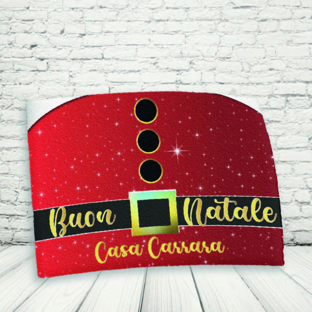 TOVAGLIETTA DECORATIVA AMERICANA IN TESSUTO JUTA PER NATALE PERSONALIZZABILE CON NOME FAMIGLIA – IDEA REGALO NATALIZIA ”SANTA CLAUS CINTURA”